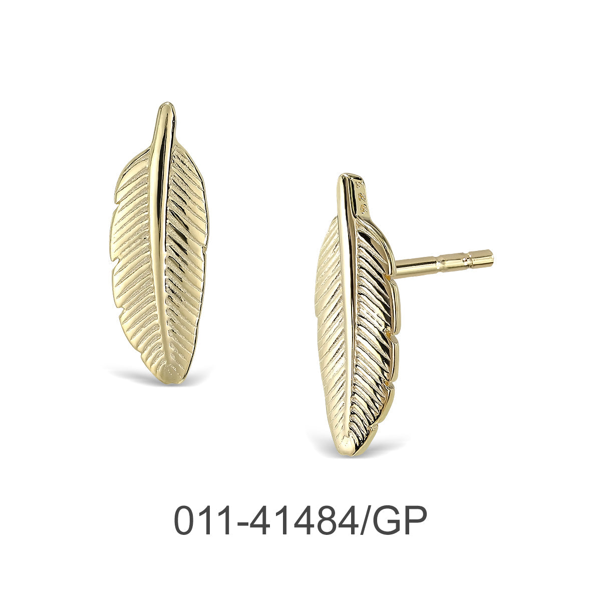 EARRING STUD FEATHER W/GOLD PLATED 1 MIC.