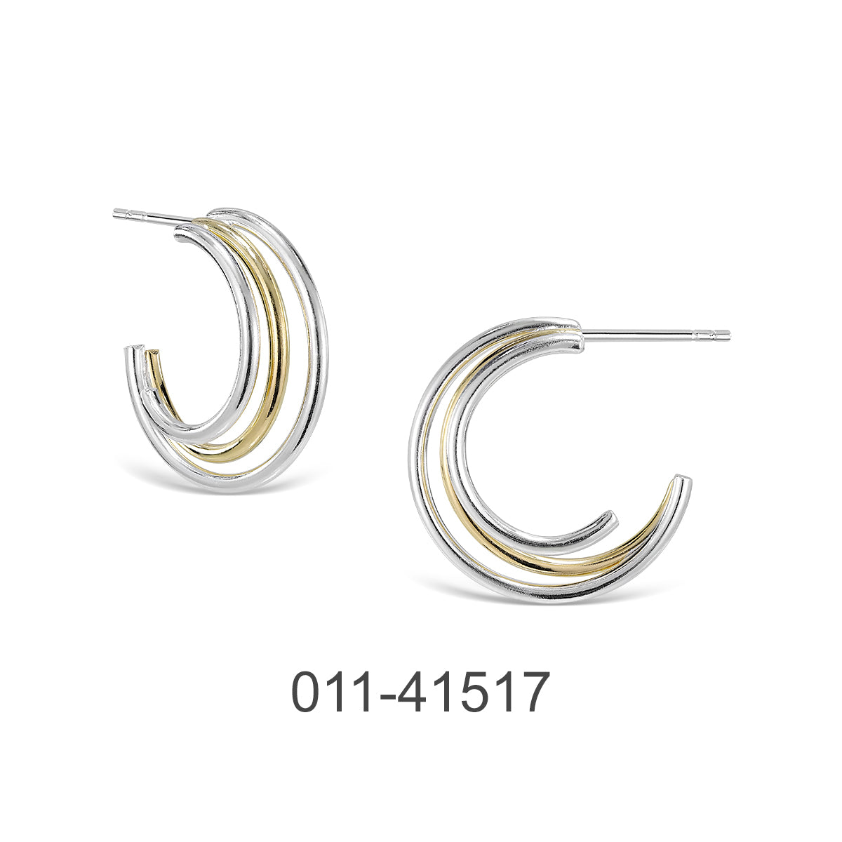 EARRINGS POST 3 LINES W/2TONE 0.5MIC(SP+GP)
