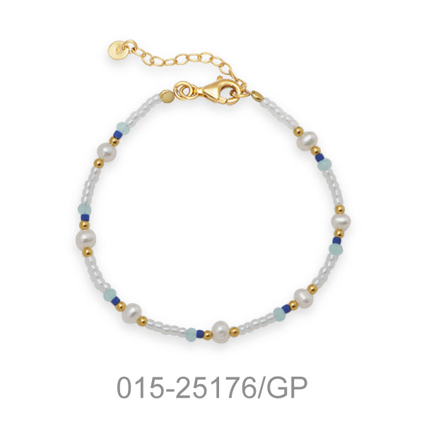 BRACELET SMALL BEAD W/CRYSTAL & FW.PEARL & GP 0.5 MIC. 2.1 G