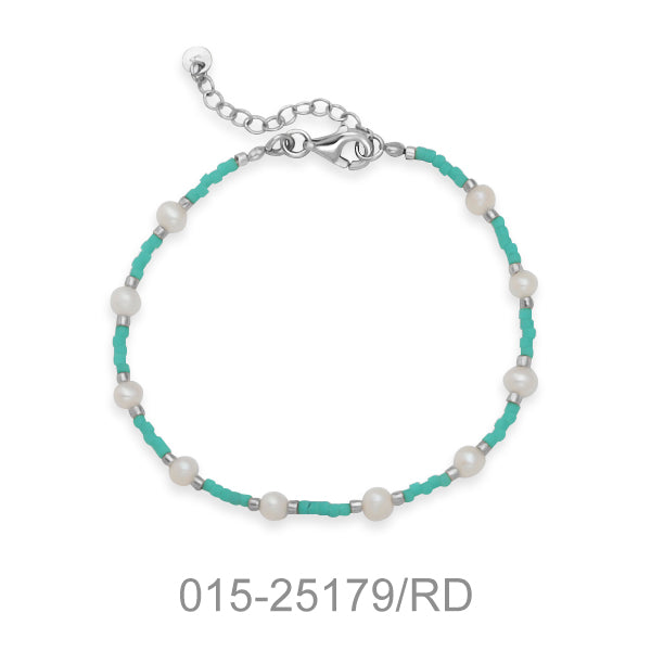 BRACELET SMALL BEAD W/FW.PEARL & RHODIUM 2 G