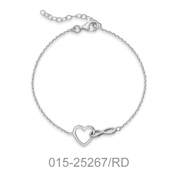 BRACELET CHAIN 17+3 CM. W/HEART & INFINITY & RHODIUM 1.5 G