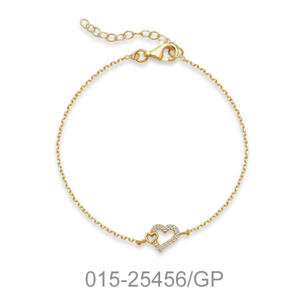 BRACELET CHAIN 16+3 CM. W/DOUBLE HEART& CZ&GOLD PLATED 0.5 MC. 1.1 G