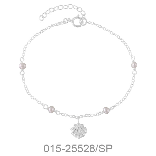 BRACELET CHAIN 17+3 CM. SHELL W/FW.PEARL&SILVER PLATED 1.3 G