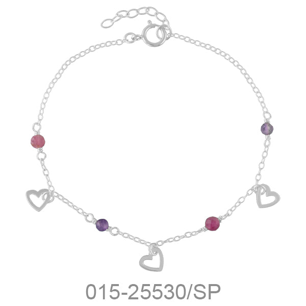 BRACELET CHAIN 17+3 CM. HEART W/STONE&SILVER PLATED 1.2 G