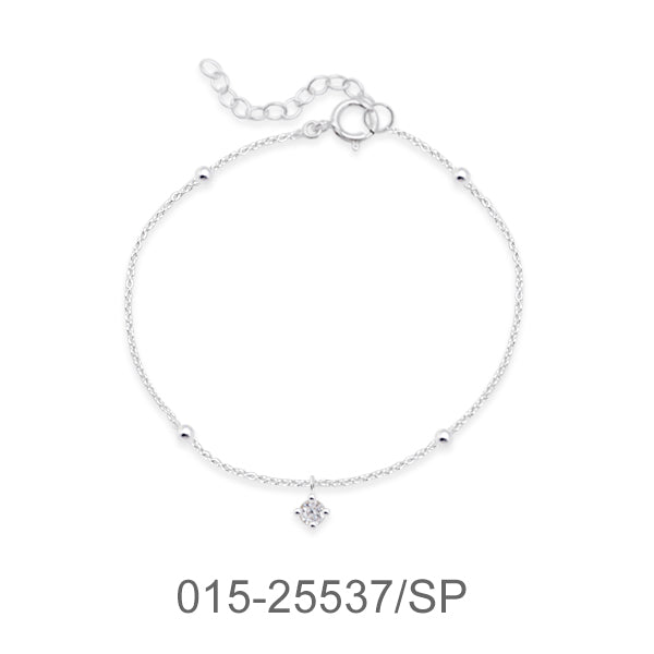 BRACELET CHAIN 17+3CM. W/CZ&SILVER PLATED 9WEIGHT 0.8 G 925 SILVER