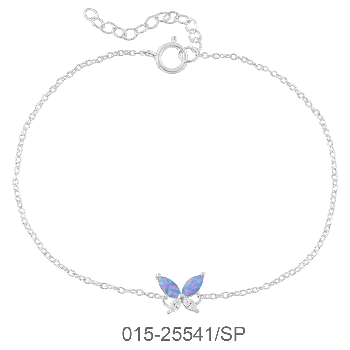 BRACELET CHAIN 17+3 CM. BUTTERFLY W/SYN. OPAL & SILVER PLATED+E-COAT