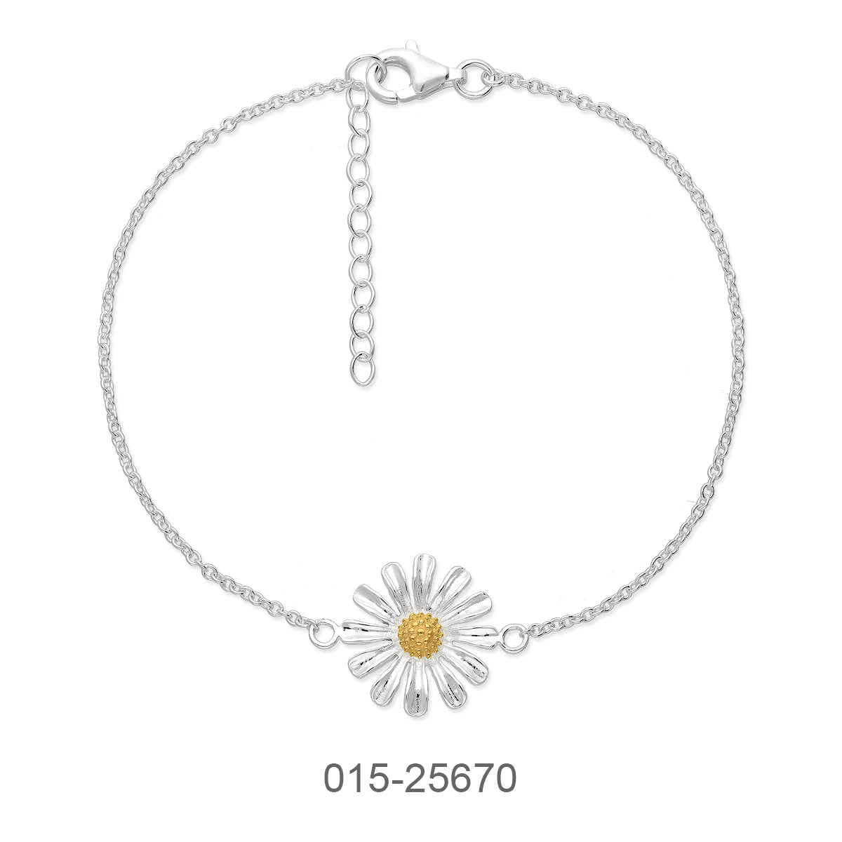 BRACELET CHAIN 17+3 CM. DAISY W/2TONE 0.5 MIC{SP+GP}