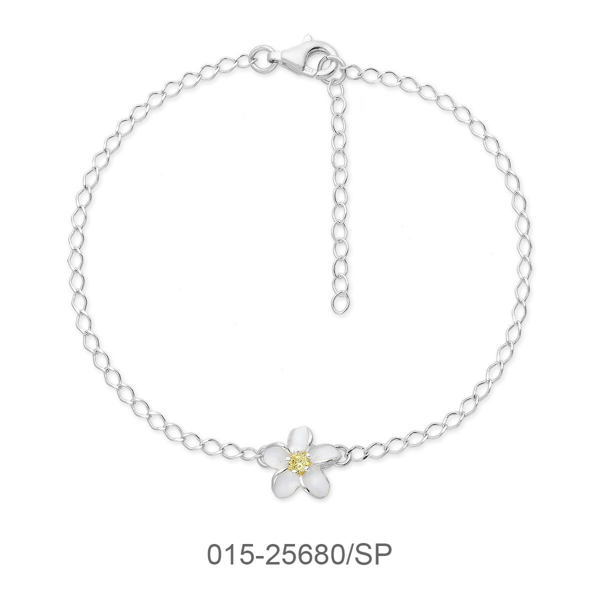 BRAECLET CHAIN 17+3 CM. FLOWER W/CZ & ENAMEL & SILVER PLATED