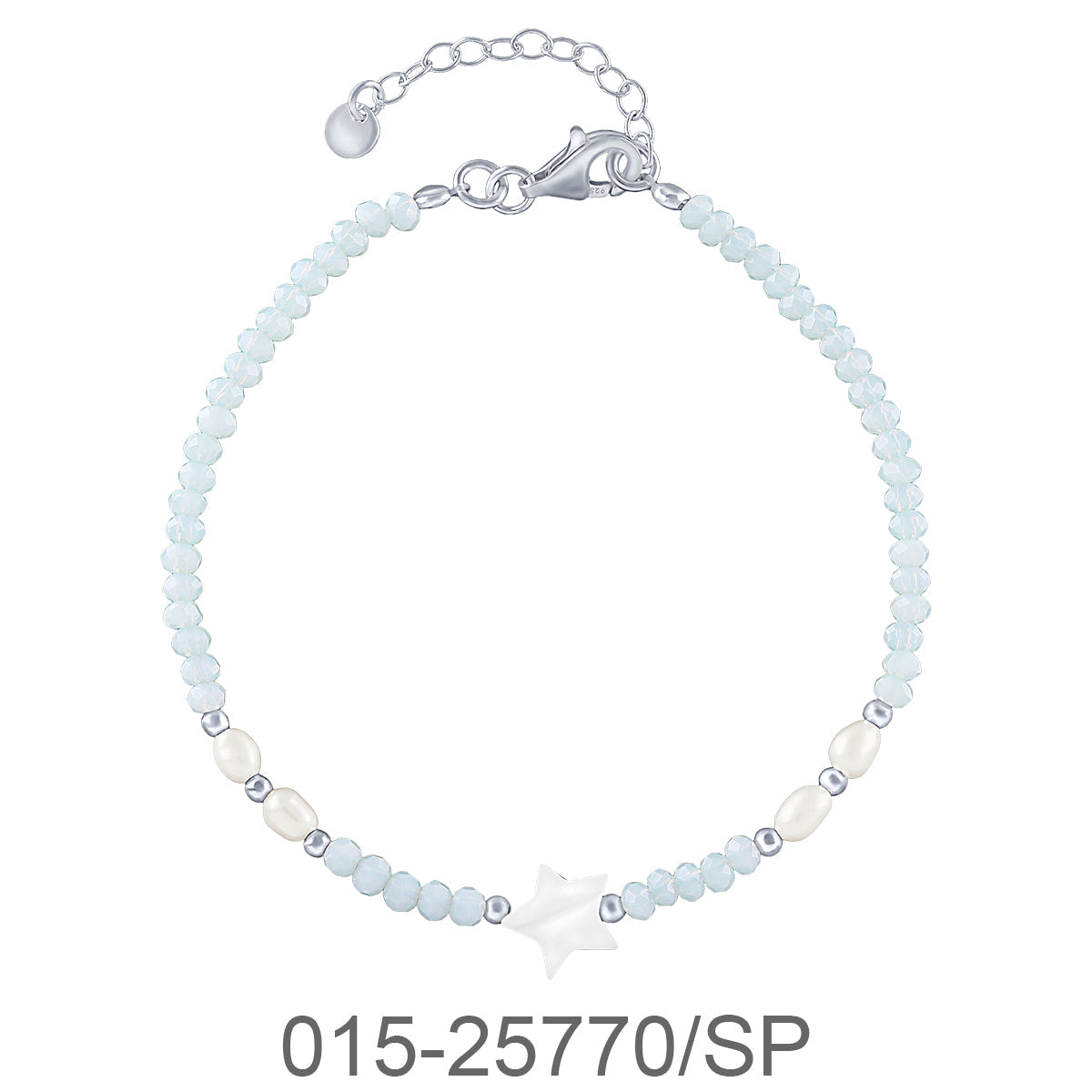 BRACELET CHAIN 17+3 CM. STAR MOP W/FW.PEARL & CRYSTAL & SILVER PLATED
