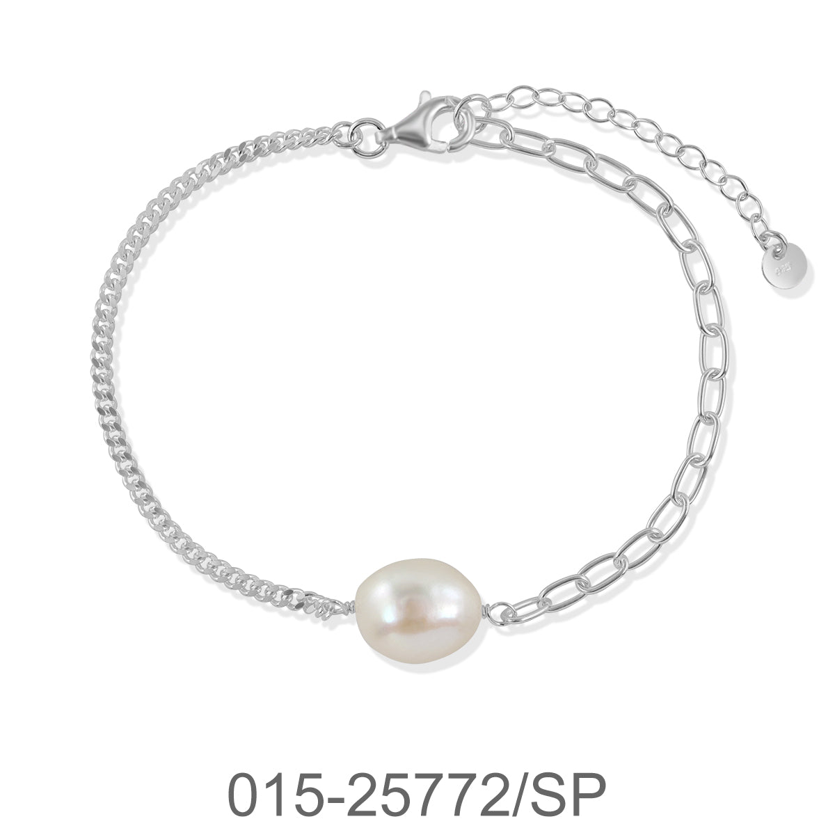 BRACELET CHAIN 17+3 CM.W/FW.PEARL& SILVER PLATED