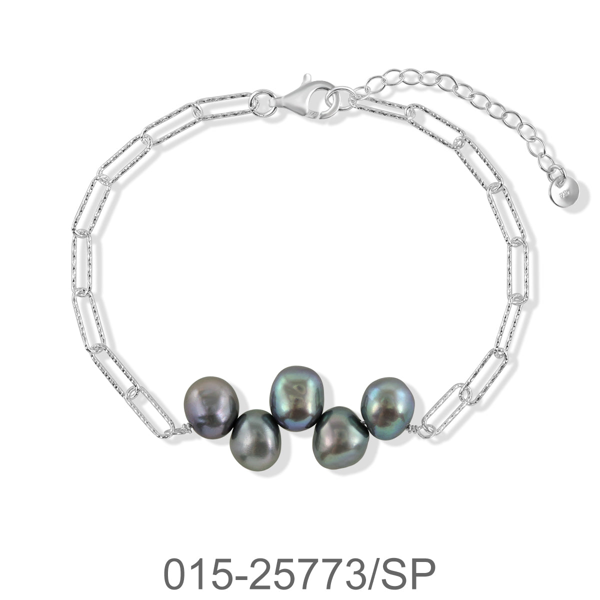 BRACELET CHAIN 17+3 CM.W/FW.PEARL& SILVER PLATED
