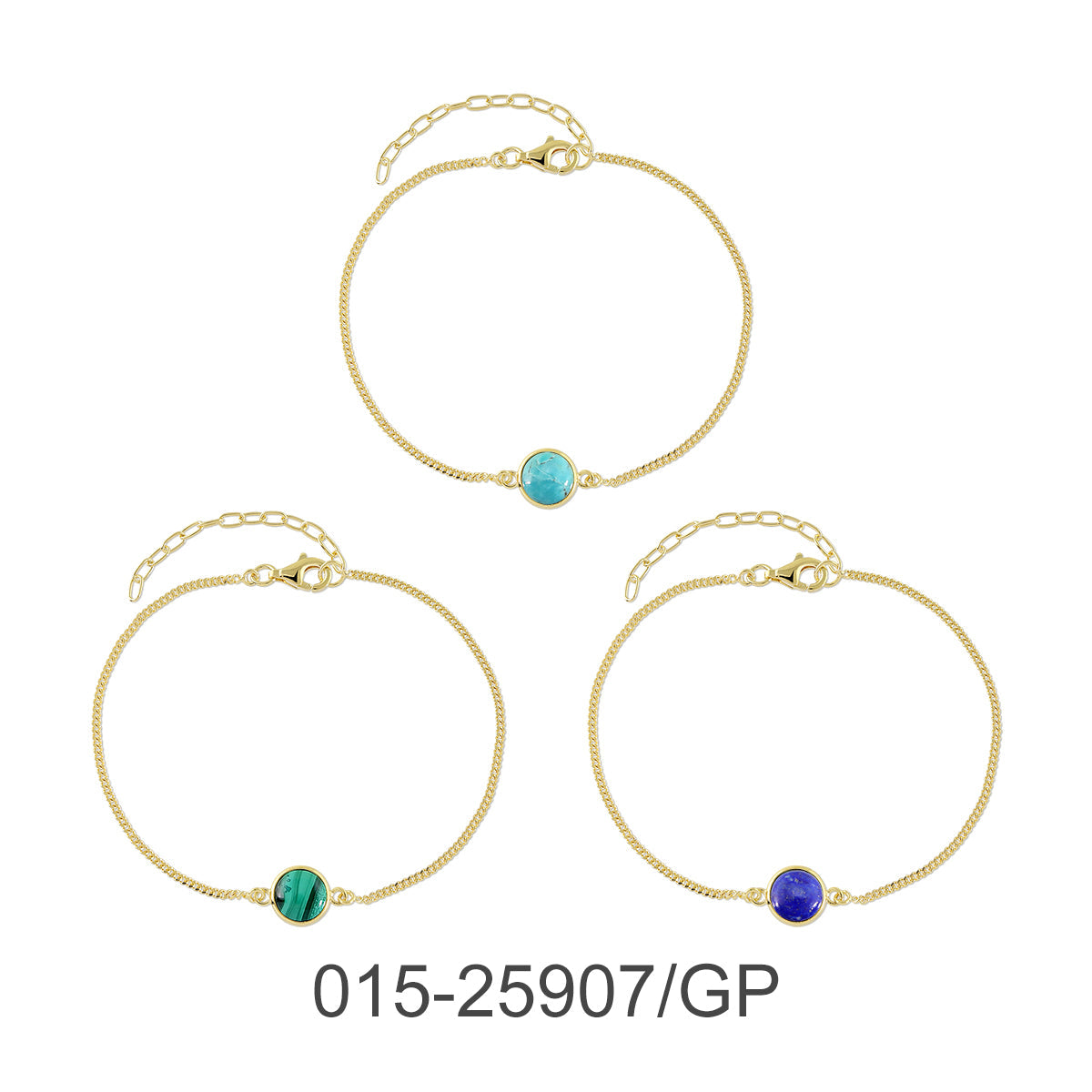 BRACELET CHAIN 17+4 CM.ROUND W/REAL STONE &GP 0.5MC