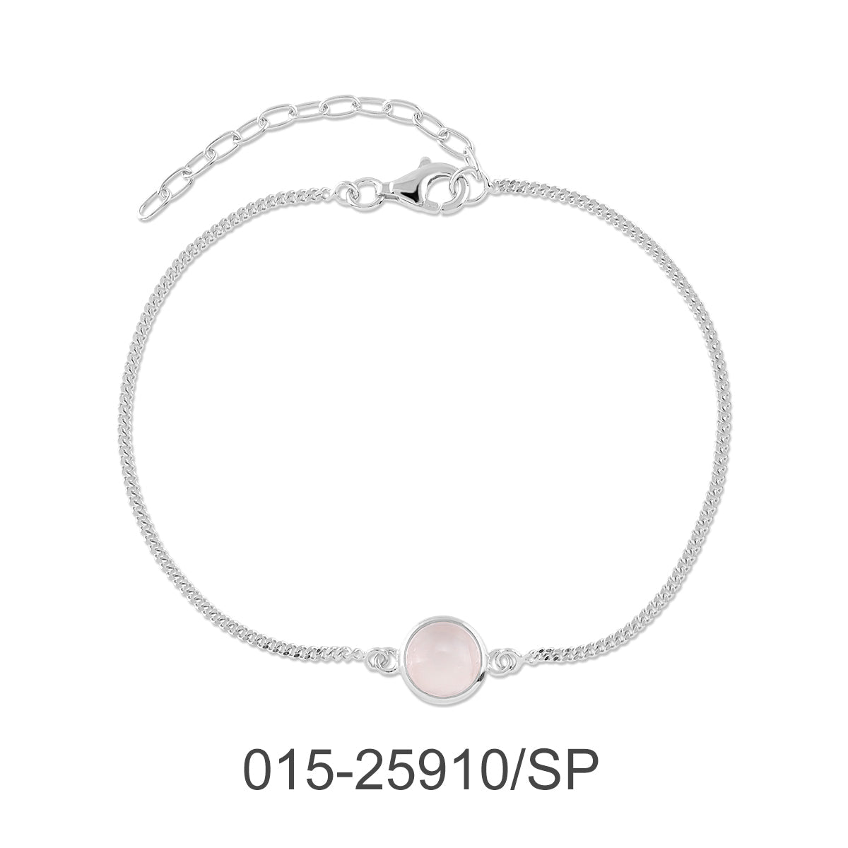 BRACELET CHAIN 17+4 CM.ROUND W/ROSE QUARTZ &SILVER PLATED