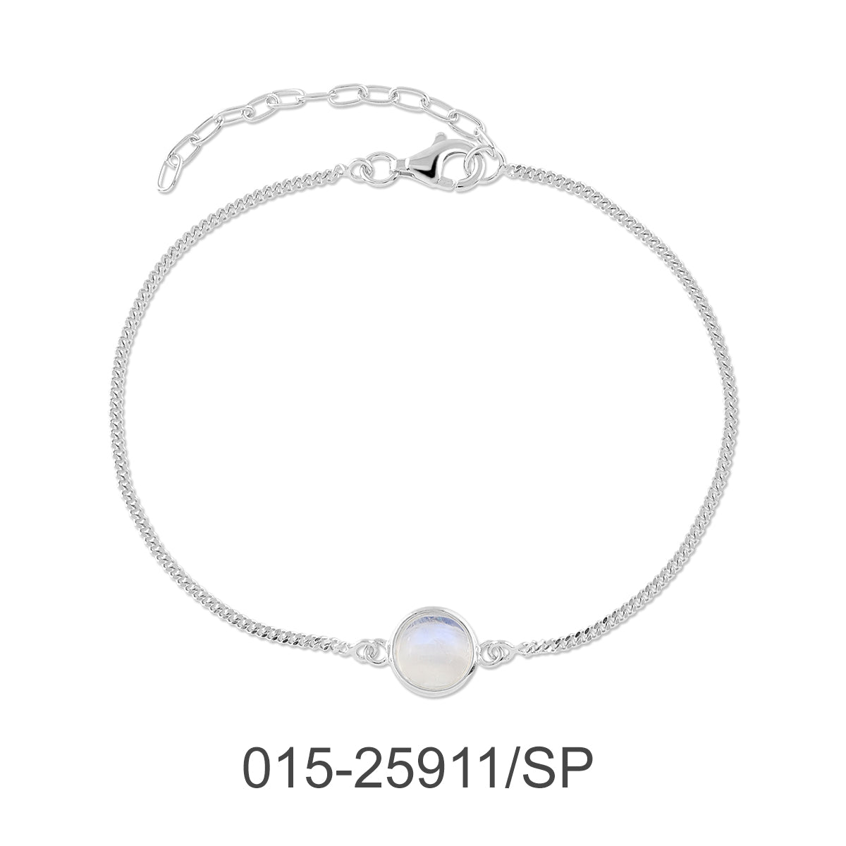 BRACELET CHAIN 17+4 CM.ROUND W/RAINBOW MOONSTONE &SILVER PLATED