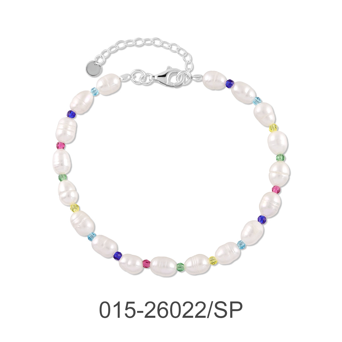 BRACELET CHAIN 17+3 CM. W/FW.PEARL & CRYSTAL & SILVER PLATED