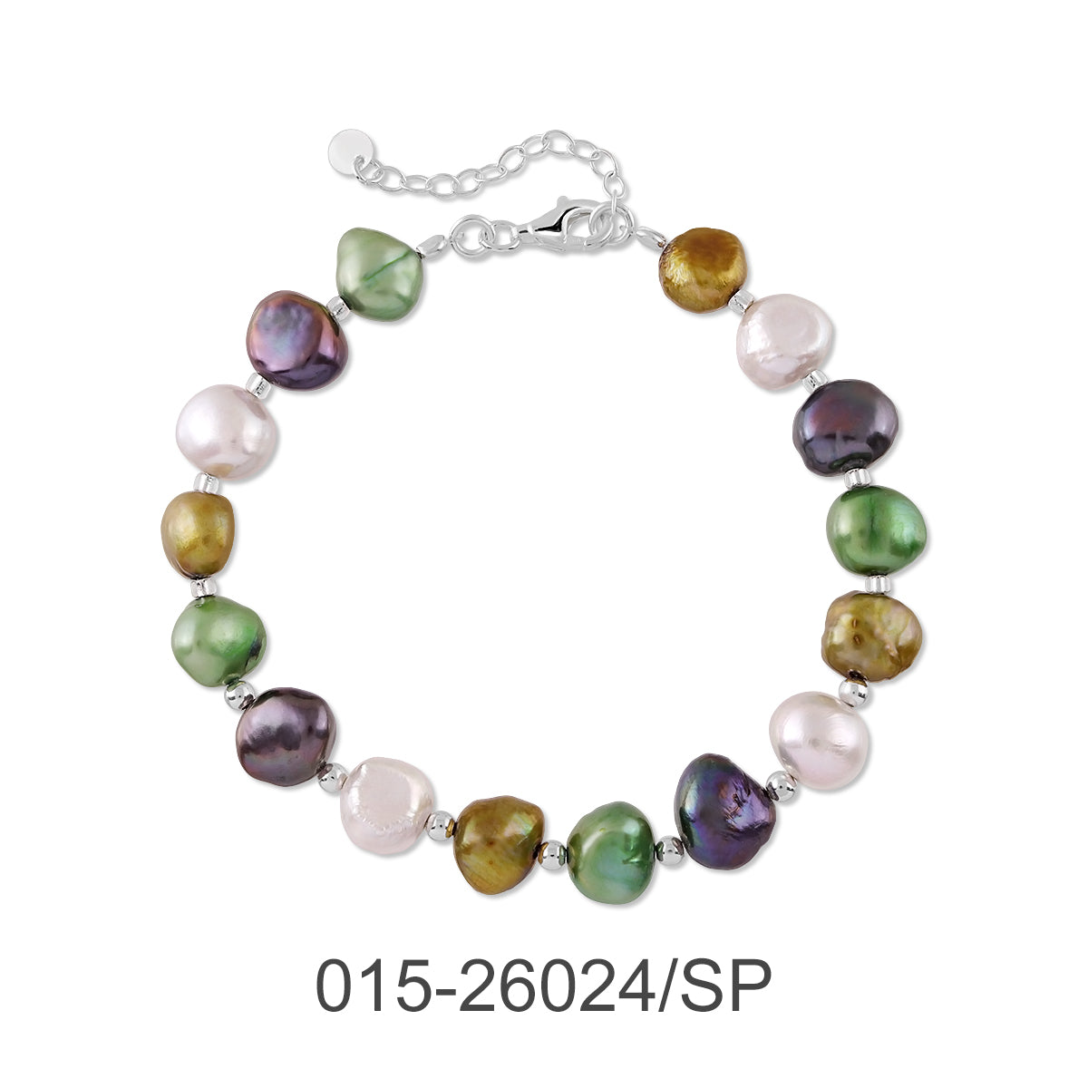 BRACELET CHAIN 18+3 CM. & BALL W/MULTICOLOR FW.PEARL & SMALL BEAD & SILVER PLATED