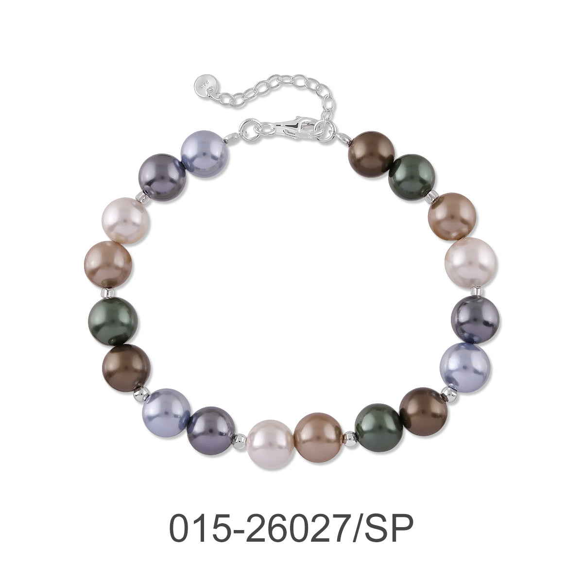 BRACELET CHAIN 18+3 CM. & BALL W/MULTICOLOR SHELL PEARL & SMALL BEAD & SILVER PLATED