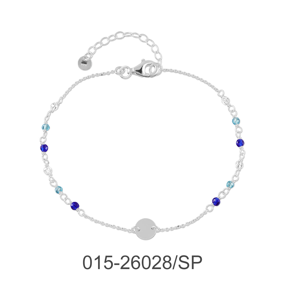 BRACELET CHAIN 17+3 CM. ROUND W/CRYSTAL & SILVER PLATED