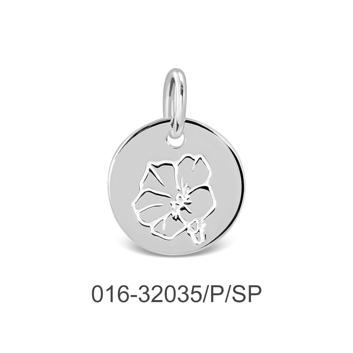 PENDANT ROUND W/BIRTH FLOWER "MORNING GLORY " & SILVER PLATED