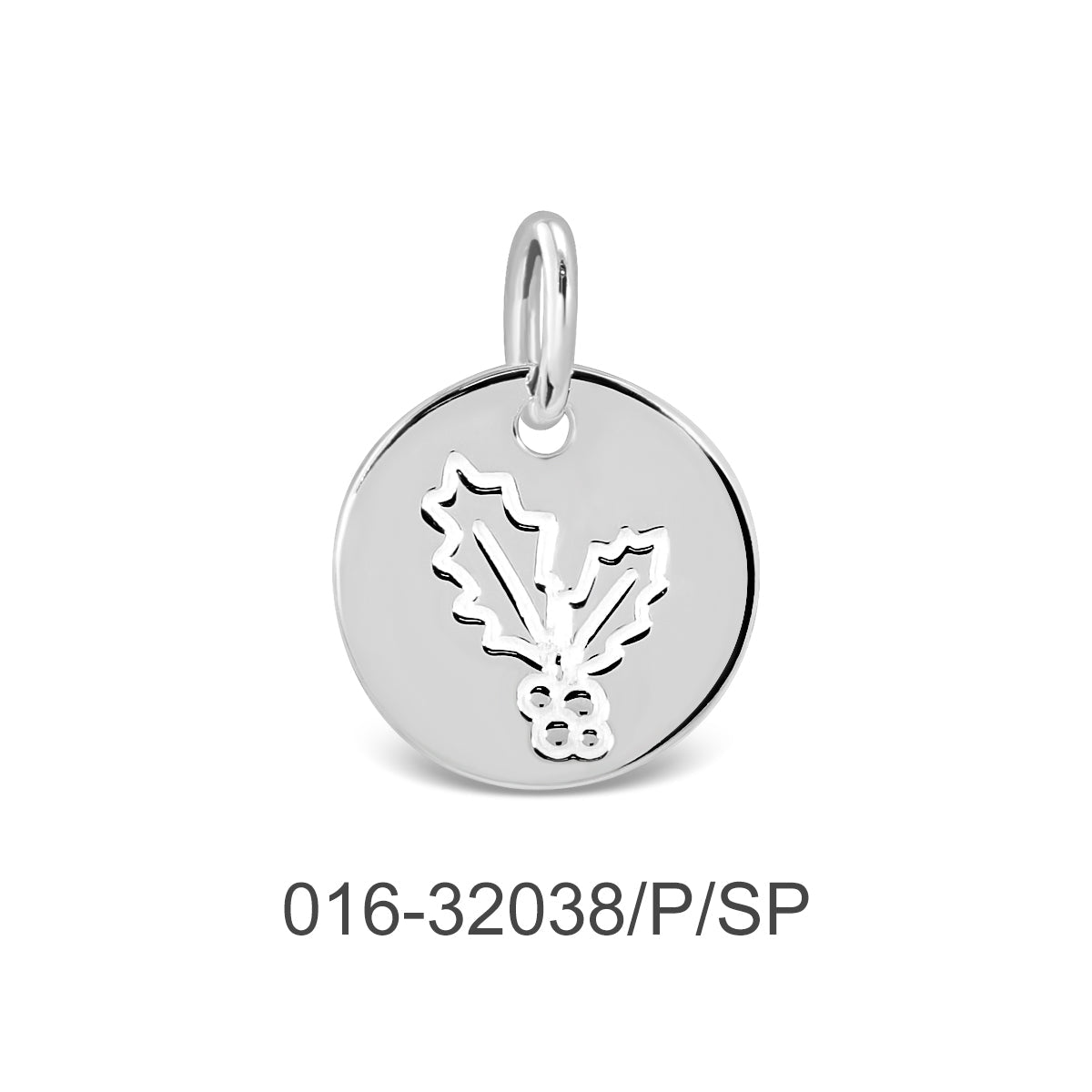 PENDANT ROUND W/BIRTH FLOWER "HOLLY BERRY" & SILVER PLATED