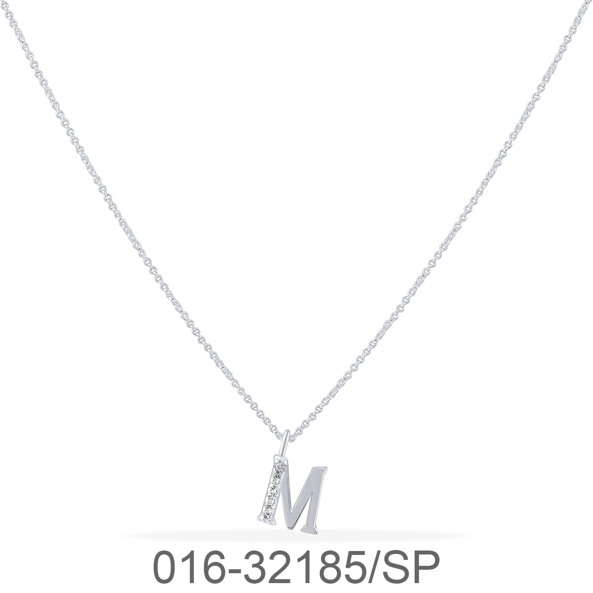 NECKLACE CHAIN 42+3 CM. ALPHABET " M "W/CZ. &SILVER PLATED