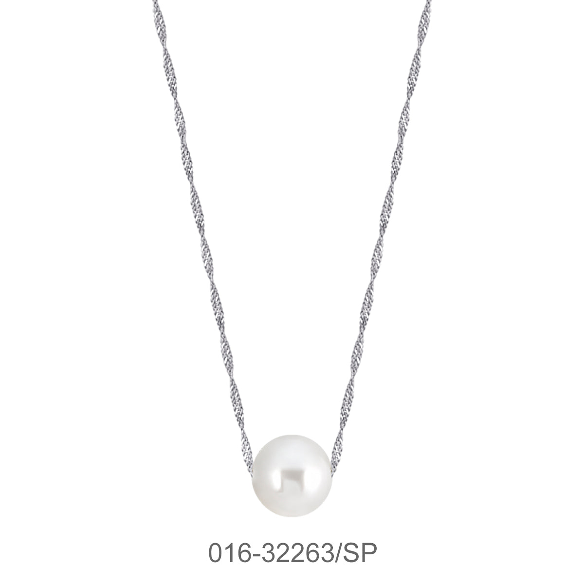 NECKLACE CHAIN 40+5 CM W/FW.PEARL& SILVER PLATED+E-COAT