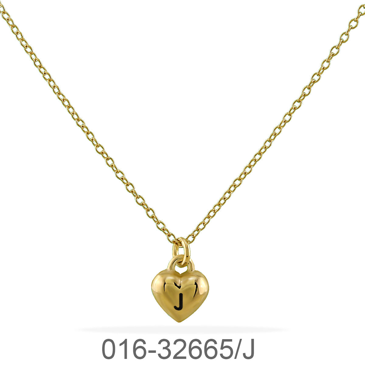 NECKLACE CHAIN 40+5 CM. W/HEART "J" & GOLD PLATED 0.5 MIC+BLACK PAINT