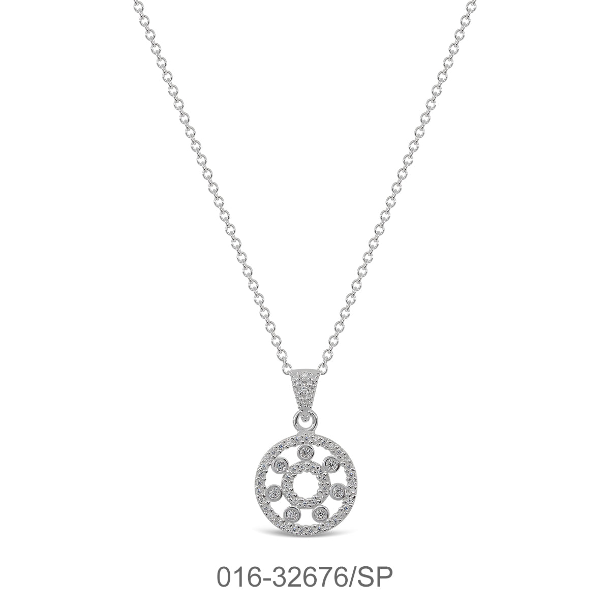 NECKLACE CHAIN 42+3 CM. ROUND W/CZ & SILVER PLATED