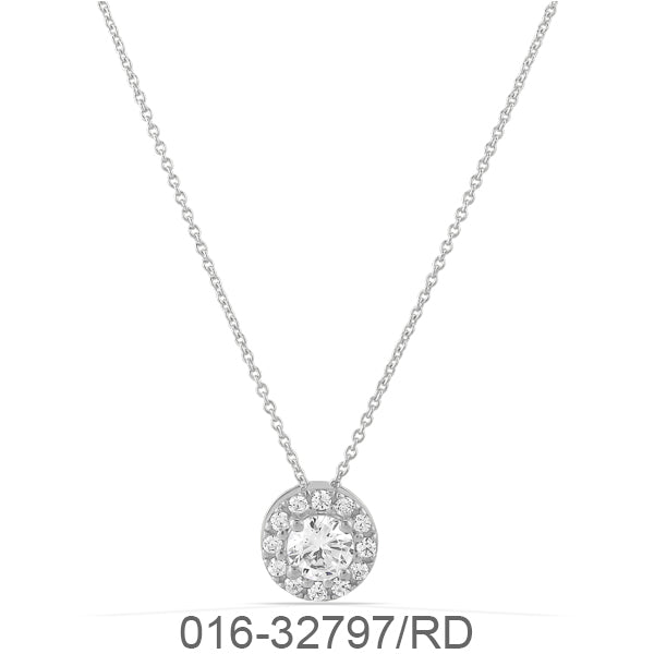 NECKLACE CHAIN 40+5 CM. & ROUND W/CZ. &RHODIUM PLATED