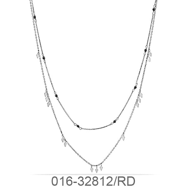 NECKLACE 2 ROW CHAIN 40+5CM. KITE 2.5*4 mm.W/HEMATITE&RHODIUM PLATED