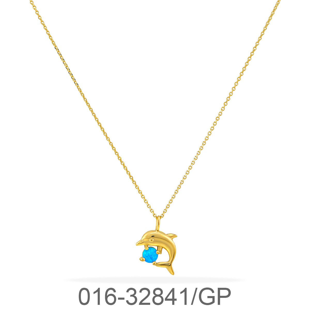 NECKLACE CHAIN 40+5 CM. DOLPHIN W/SYN. OPAL & GOLD PLATED 0.5MC.