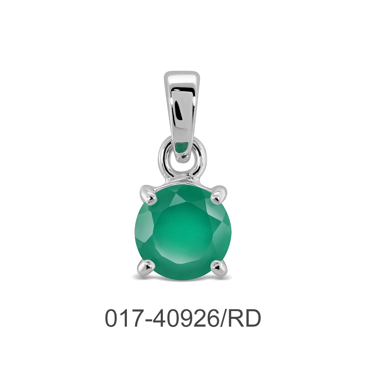 PENDANT ROUND MAY " GREEN AGATE " W/BIRTHSTONE & RHODIUM
