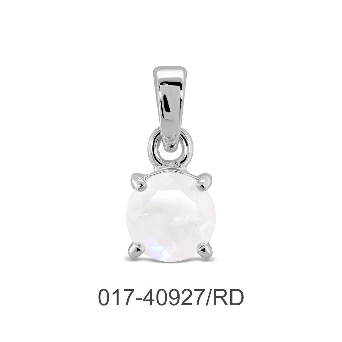 PENDANT ROUND JUNE " RAINBOW MOONSTONE " W/BIRTHSTONE & RHODIUM
