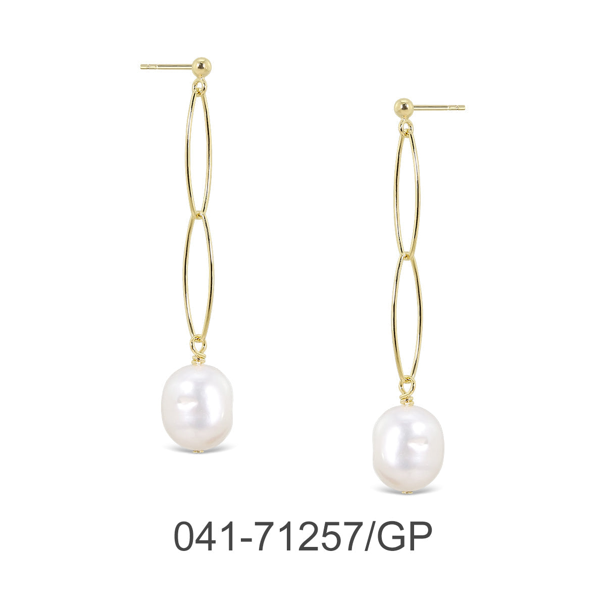 EARRING BALL W/MARQUOISE CHAIN & FW.PEARL & GOLD PLATED 0.5 MIC.