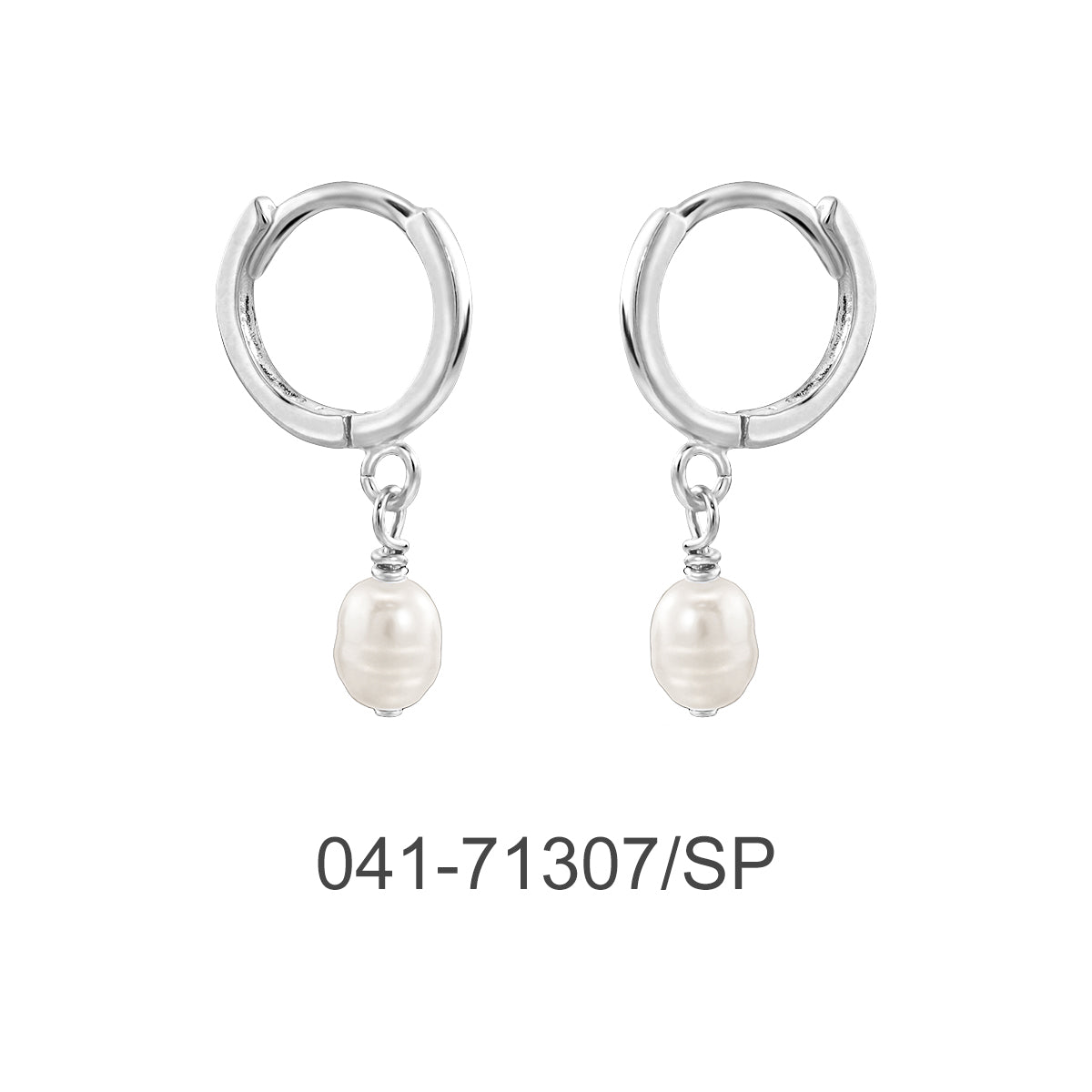 EARRING HUGGIE 1.6*12 MM. W/FW.PEARL & SILVER PLATED