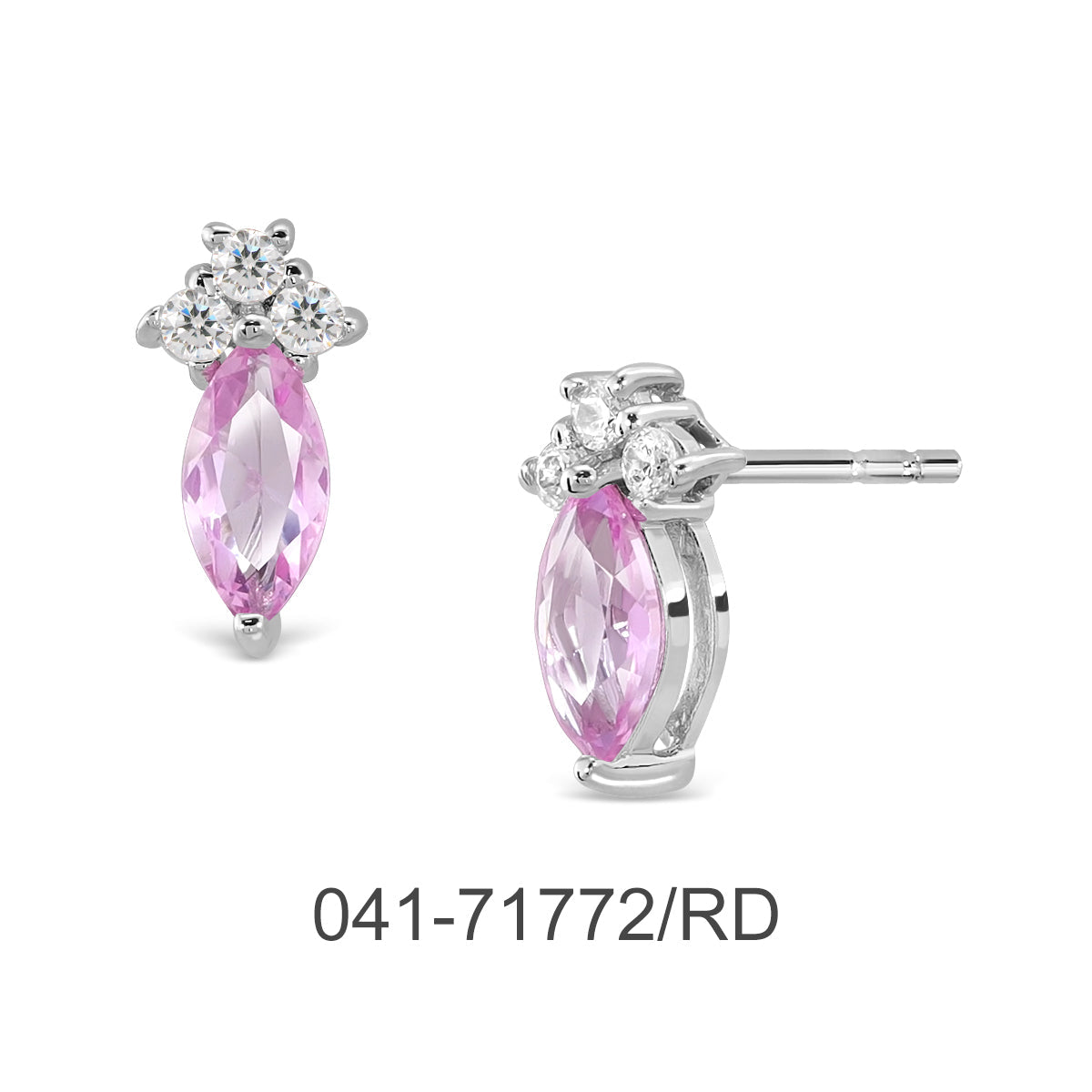 EARRING STUD W/MARQUISE &SYN. PINK & RHODIUM PLATED