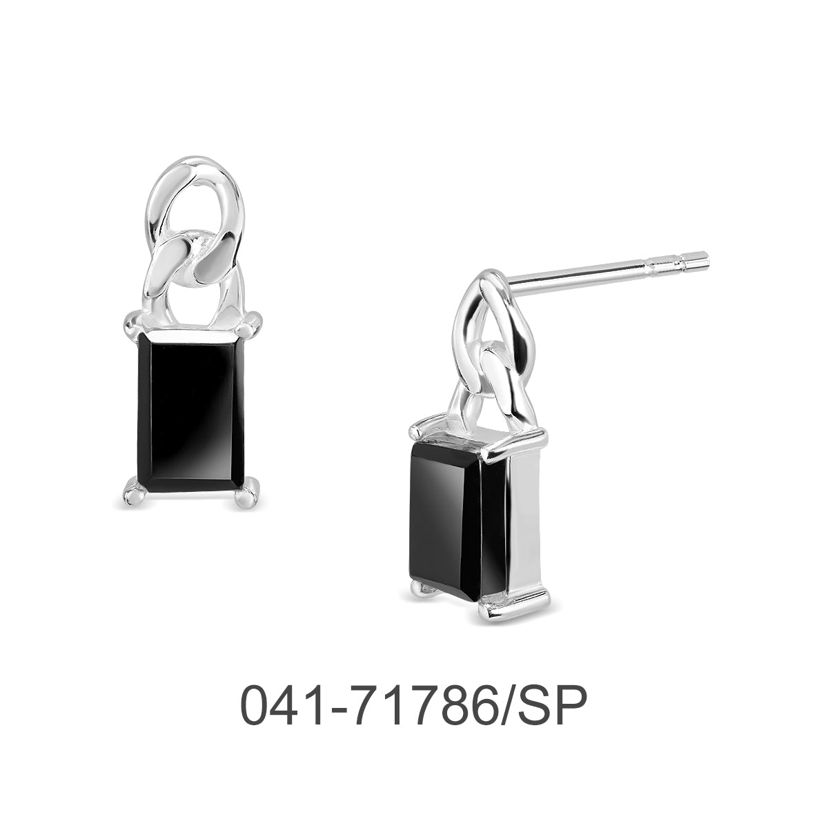 EARRING STUD CHAIN W/ONYX & SILVER PLATED