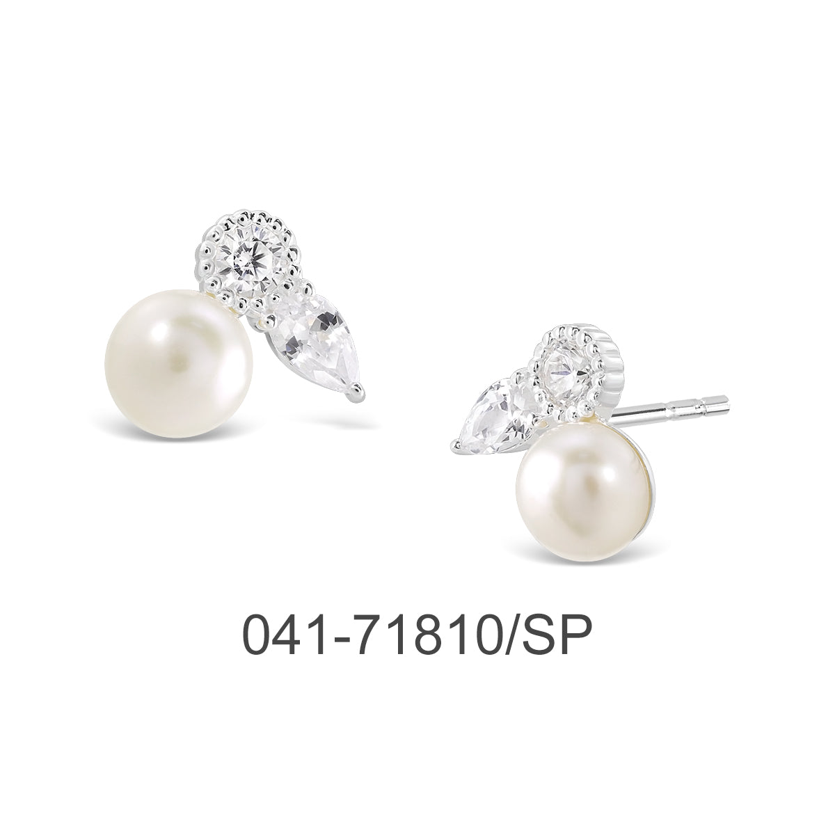 EARRINGS STUD W/CZ & FW. PEARL SILVER PLATED
