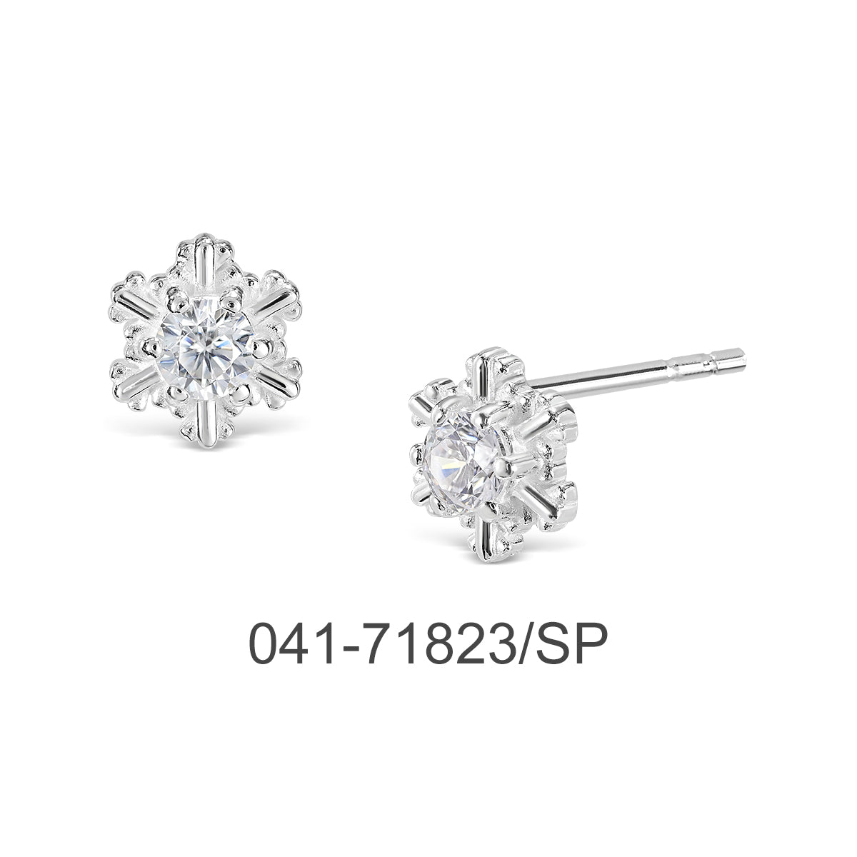 EARRING STUD SNOWFLAKE W/CZ & SILVER PLATED