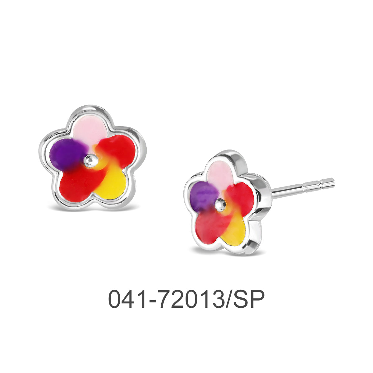 EARRING STUD FLOWER W/ENAMEL & SILVER PLATED