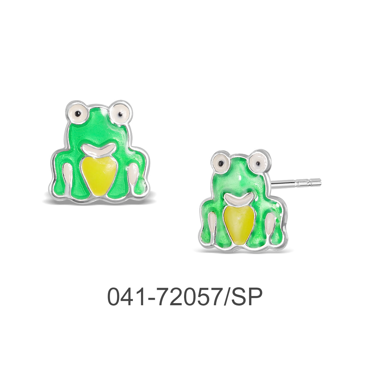 EARRING STUD FROG W/ENAMEL & SILVER PLATED