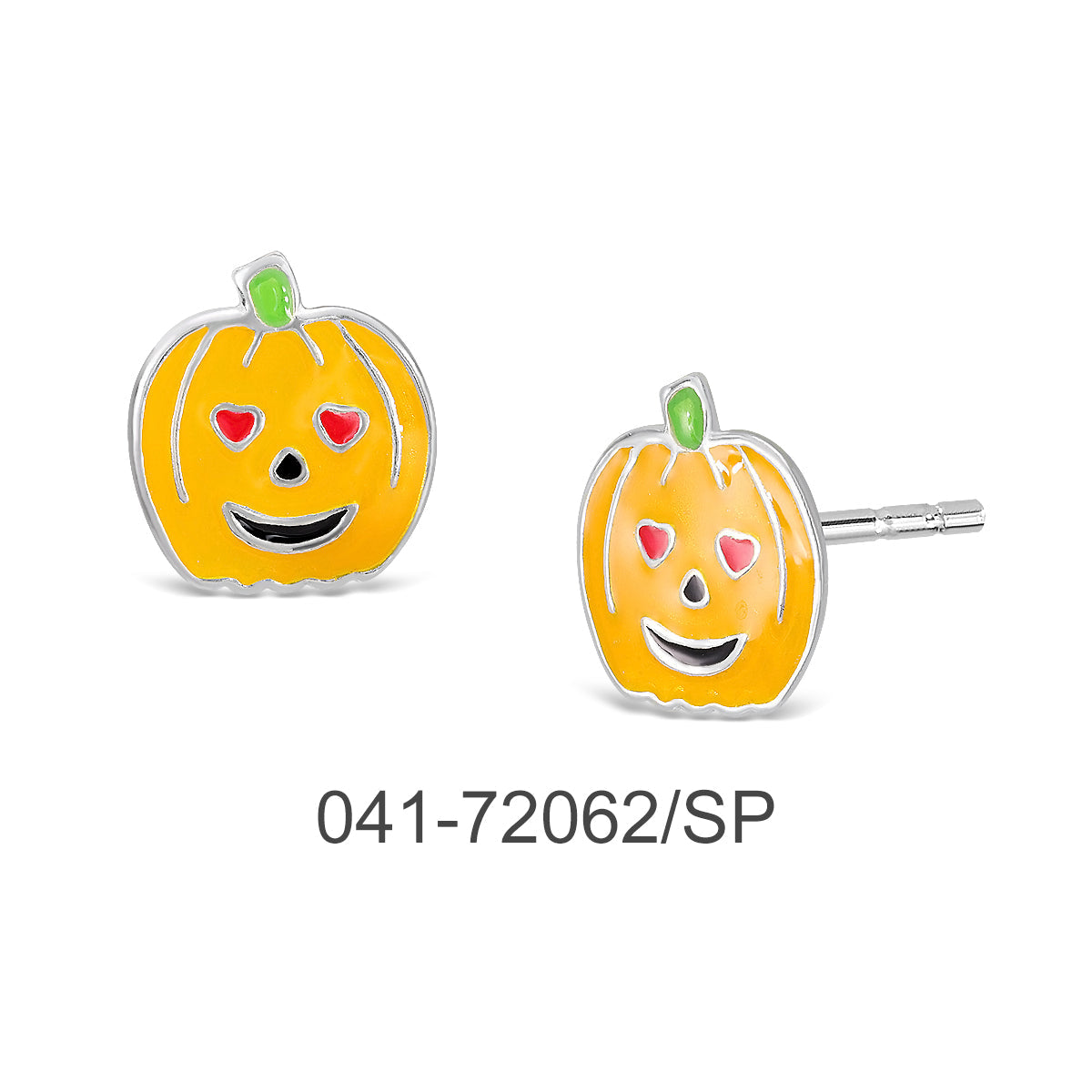 EARRING STUD PUMPKIN W/ENAMEL & SILVER PLATED