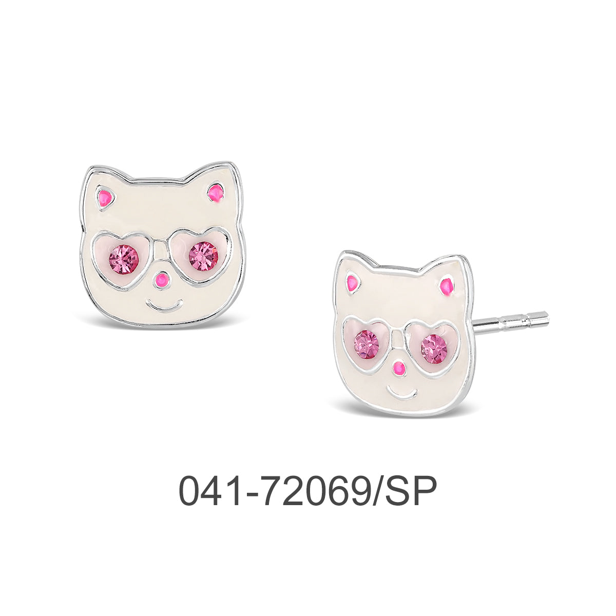 EARRING STUD BEAR W/ENAMEL & SILVER PLATED