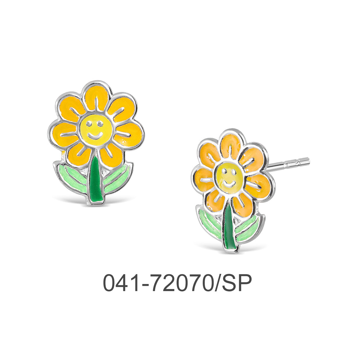 EARRING STUD FLOWER W/ENAMEL & SILVER PLATED