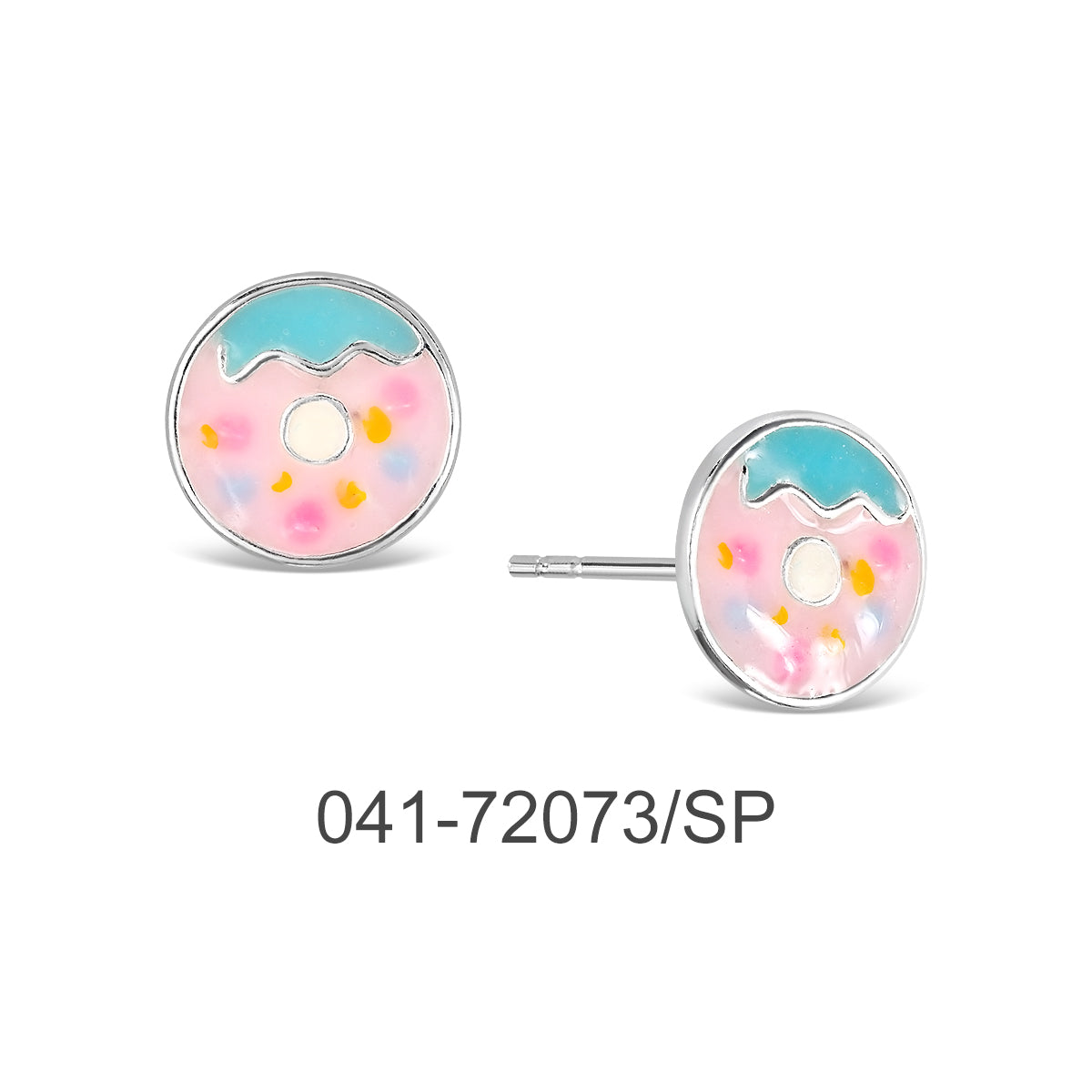 EARRING STUD DONUT W/ENAMEL & SILVER PLATED