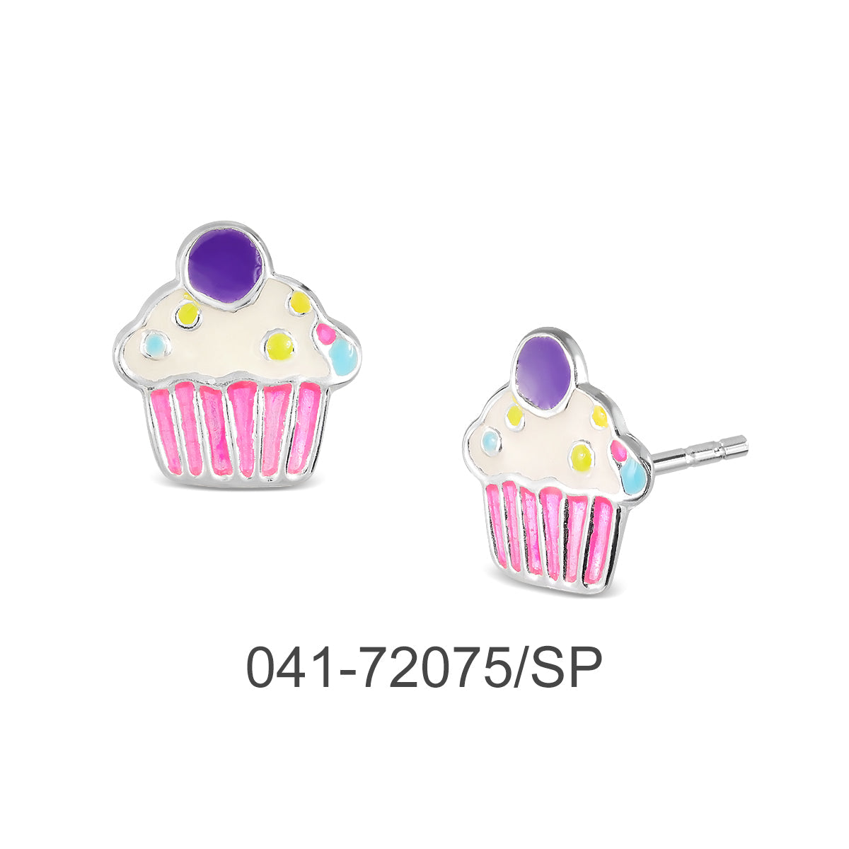 EARRING STUD CUPCAKE W/ENAMEL & SILVER PLATED
