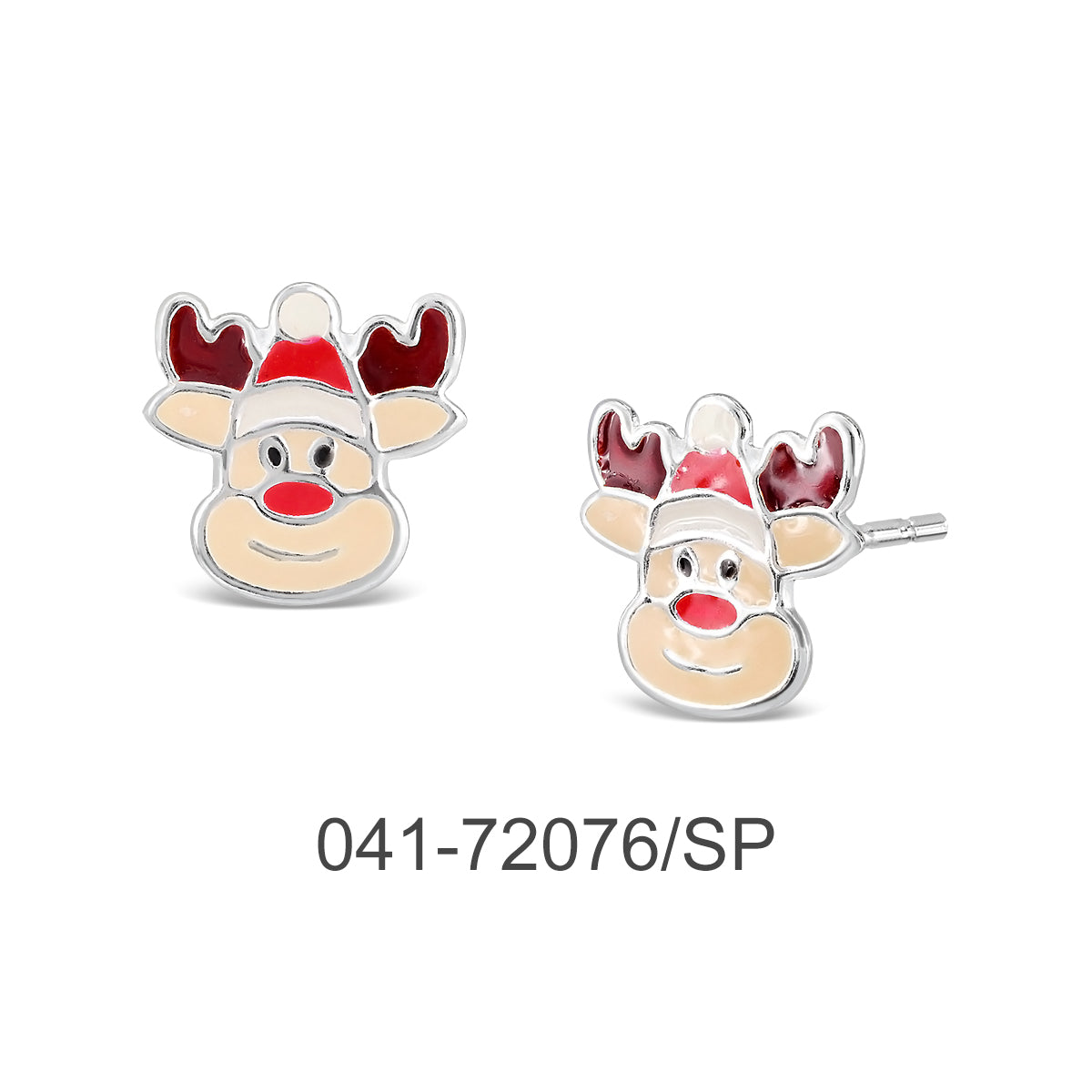 EARRING STUD REINDEER W/ENAMEL & SILVER PLATED