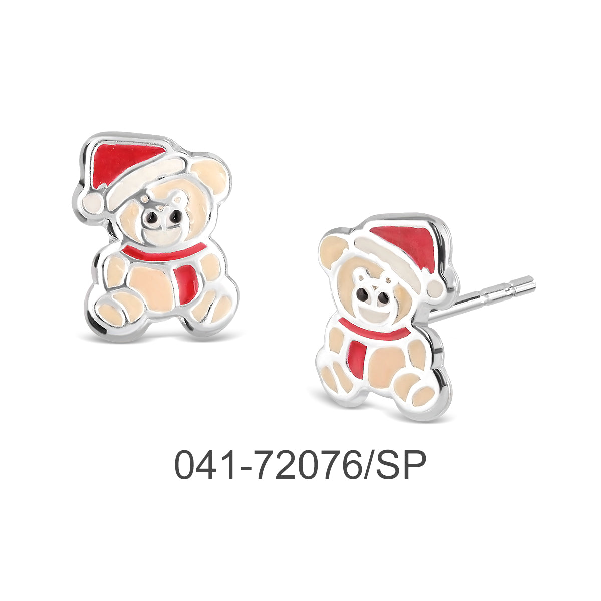 EARRING STUD BEAR W/ENAMEL & SILVER PLATED
