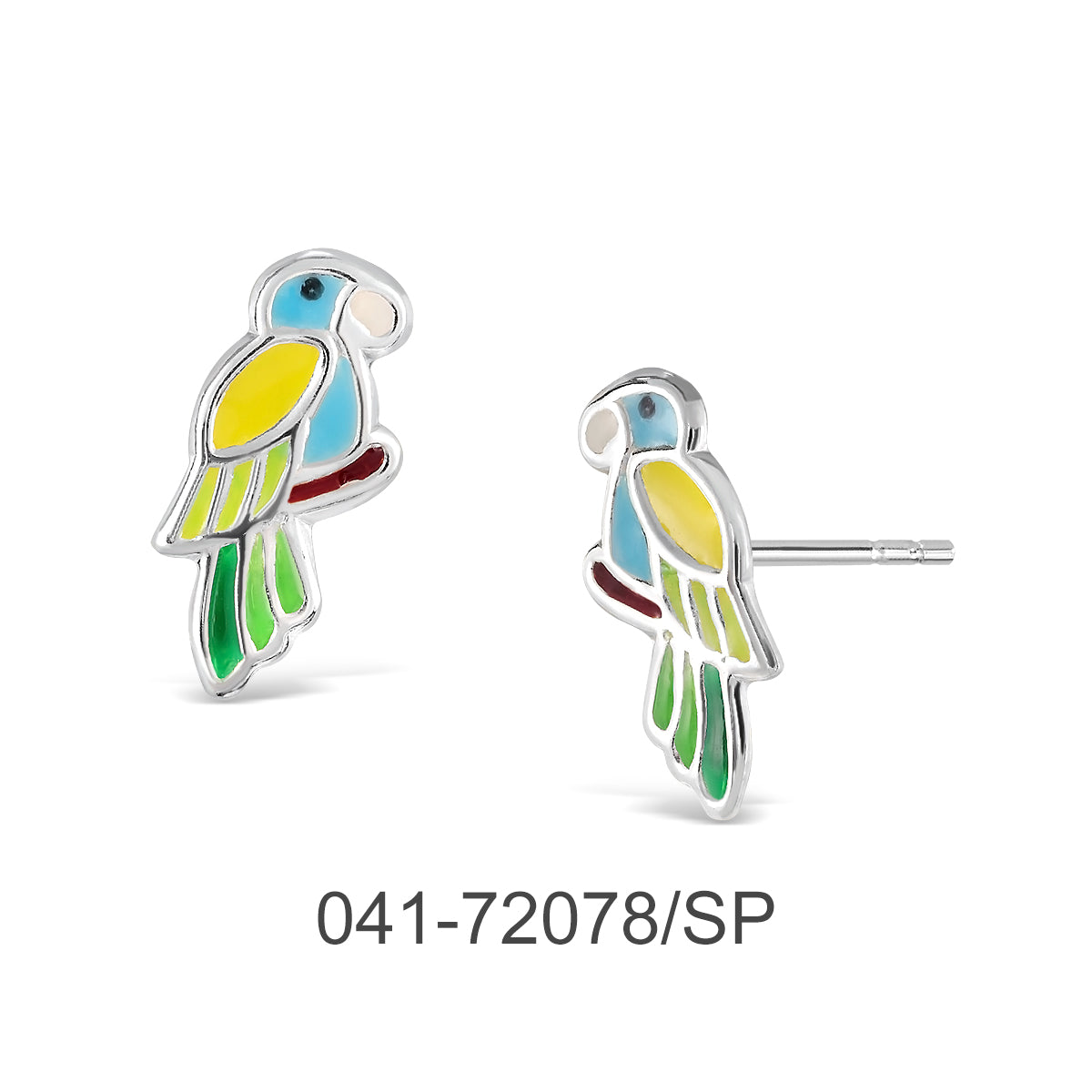 EARRING STUD BIRD W/ENAMEL & SILVER PLATED