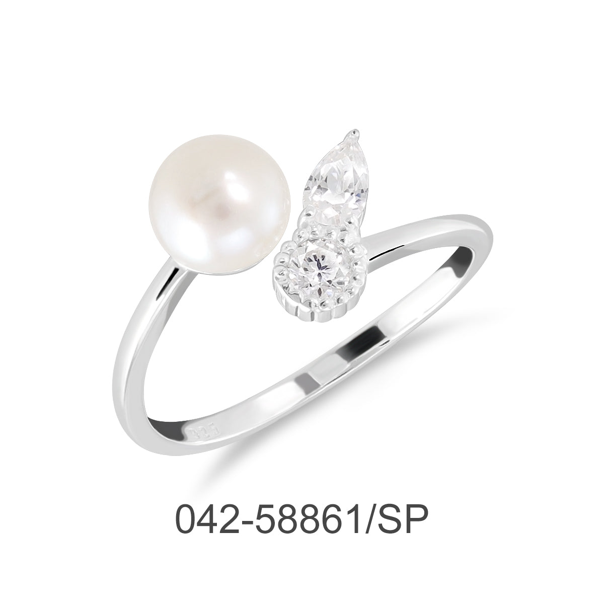 RING W/CZ & FW. PEARL & SILVER PLATED